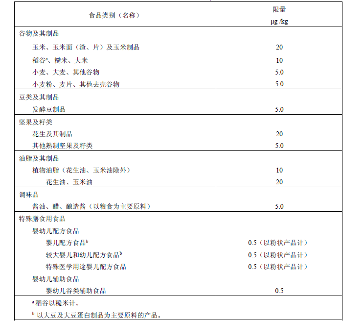 GB2761—2011食品安全國家標(biāo)準(zhǔn)食品中真菌毒素限量規(guī)定了食品中黃曲霉毒素B1的限量指標(biāo)。