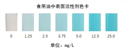 比色管下層溶液如果顯綠色或藍(lán)色,說明食用油中含有表面活性劑,藍(lán)色越深表面活性劑含量越高。