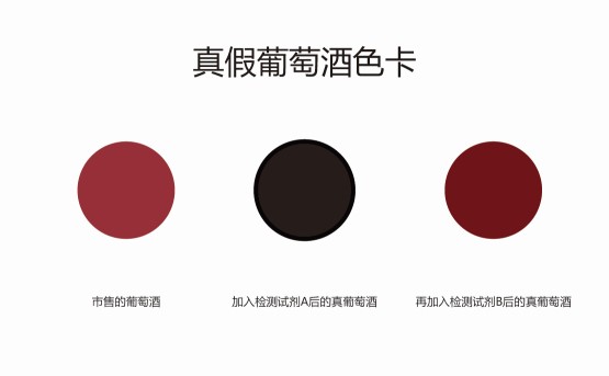2.3:遇堿變了色的真葡萄酒,加入檢測試劑B后又還原到了最初的紫紅色,也恢復(fù)了之前的透光感。而勾兌假酒依然沒有絲毫變化。