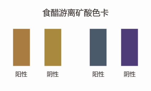 1.1:取細(xì)玻璃棒或毛細(xì)管沾少許樣品于檢測試劑A上,10min內(nèi),若點(diǎn)樣處出現(xiàn)紫色斑點(diǎn)或紫色環(huán)(環(huán)內(nèi)淺紫色)為陽性結(jié)果,試紙不出現(xiàn)紫色斑或出現(xiàn)紫色環(huán)(環(huán)內(nèi)黃色或白色)為陰性結(jié)果。(檢測白醋時(shí)要等試紙稍干后觀察);
