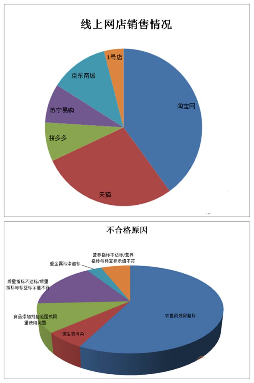 另外,不合格食品中,有25批次食品來自線上網(wǎng)店,其中淘寶網(wǎng)有10批次,天貓有7批次,拼多多有2批次,蘇寧易購有2批次,京東商城有3批次,1號店有1批次。