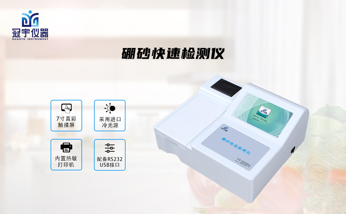 冠宇儀器硼砂快速檢測(cè)儀能夠快速檢測(cè)面條、腐竹、米粉、涼粉、涼皮、面條、餃子皮、餛飩、粽子、肉丸、涼皮、肉制品、乳與乳制品、醬油、人造奶油、葡萄酒等食品中的硼砂含量,適用于食品安全監(jiān)管中心、食品生產(chǎn)加工貿(mào)易自檢、市場(chǎng)監(jiān)督管理部門抽檢等。