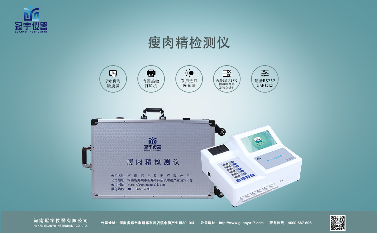 瘦肉精是一種非常常見的食品安全問題,它嚴重威脅到了生態(tài)環(huán)境的平衡,尤其是現(xiàn)在食品安全事件的發(fā)生非常頻繁,已經(jīng)成為行業(yè)內各界關注的焦點。為了解決食品安全問題,做好食品安全檢測工作是十分必要的。冠宇儀器瘦肉精快速檢測儀通過反射光譜法測試CT線強弱程度可以定量檢測克倫特羅、萊克多巴胺、沙丁胺醇殘留含量;瘦肉精快速檢測儀廣泛應用于養(yǎng)殖場、屠宰場、肉產(chǎn)品深加工企業(yè)、檢驗檢疫單位使用。檢測瘦肉精殘留含量。