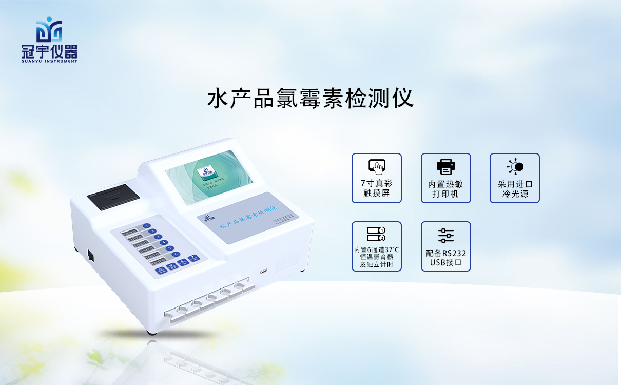 冠宇儀器GY-720水產(chǎn)品氯霉素檢測(cè)儀應(yīng)用競(jìng)爭(zhēng)抑制免疫層析的原理,通過檢測(cè)線熒光定量卡中的熒光強(qiáng)弱程度,定量分析待檢樣品中氯霉素殘留含量。http://m.xfgsgw.cn/products-zh-2622.html