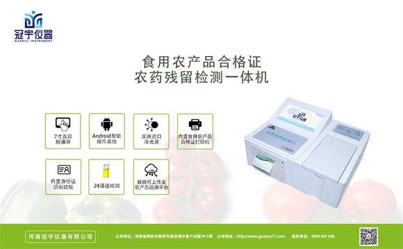 農(nóng)藥殘留傷害不容忽視,相應(yīng)的監(jiān)管部門也應(yīng)加強農(nóng)藥殘留的監(jiān)管檢控工作,維護好食品安全。冠宇儀器新一代智能型農(nóng)藥殘留檢測儀;是根據(jù)農(nóng)業(yè)標(biāo)準(zhǔn)方法(NY/T?448-2001)和國家標(biāo)準(zhǔn)(GB/T5009.199-2003)中的酶抑制率法,嚴(yán)格遵循《GB/T5009.199-2003蔬菜中有機磷和氨基甲酸酯類農(nóng)藥殘留快速檢測方法標(biāo)準(zhǔn)》中的規(guī)定對蔬菜中有機磷和氨基甲酸酯類農(nóng)藥殘留的快速檢測??蓮V泛應(yīng)用于各級政府蔬菜檢測中心、農(nóng)貿(mào)市場、超市、環(huán)保機構(gòu)、蔬菜種植基地、飯店、車載及實驗室等食品安全檢測與監(jiān)控場所等單位對果蔬中農(nóng)藥殘留的檢測。能準(zhǔn)確、快速檢測出蔬菜、水果、糧食、茶葉以及土壤中有機磷和氨基甲酸脂類農(nóng)藥殘留的快速檢測。