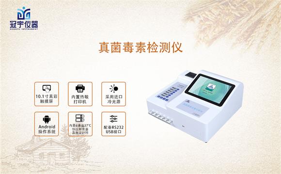 冠宇儀器真菌毒素殘留定量分析儀可快速準(zhǔn)確檢測定出玉米、大米大麥、小麥、花生、火鍋底料、豆瓣醬、糧油等食品乳制品、中藥材、制藥原料、谷物及飼料和飼料原料中的黃曲霉毒素B1、嘔吐毒素、玉米赤霉烯酮等真菌毒素,操作簡便,只需一步加樣,無需標(biāo)準(zhǔn)品,無需做標(biāo)準(zhǔn)曲線,采用熒光免疫定量分析儀讀數(shù),結(jié)果準(zhǔn)確可靠且可現(xiàn)場打印,準(zhǔn)確性高度符合HPLC法的檢測結(jié)果,為飼料質(zhì)量安全的快速檢測和控制提供了一種全新的技術(shù)手段,廣泛應(yīng)用于糧油監(jiān)測中心、中藥材加工廠、制藥廠、糧油飼料生產(chǎn)加工、食品加工貿(mào)易、養(yǎng)殖企業(yè)、面粉廠、豆制品加工生產(chǎn)企業(yè)、糧食局、畜禽養(yǎng)殖戶自查、工商質(zhì)監(jiān)部門用于市場快速篩查等。