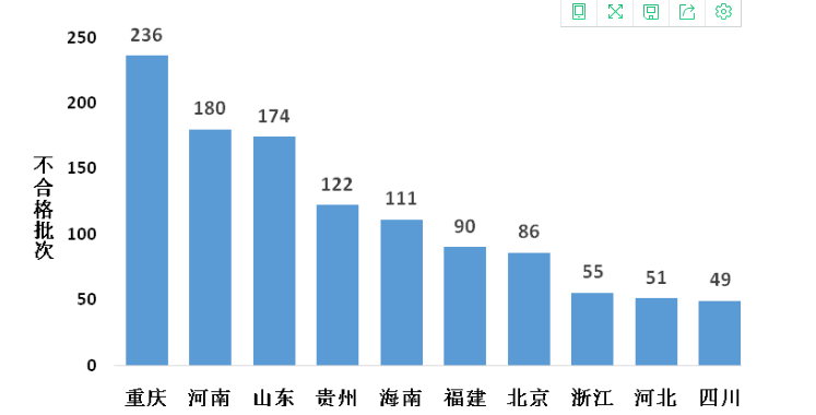 圖3各省市場(chǎng)銷售蔬菜類食用農(nóng)產(chǎn)品抽檢不合格數(shù)量分布TOP10