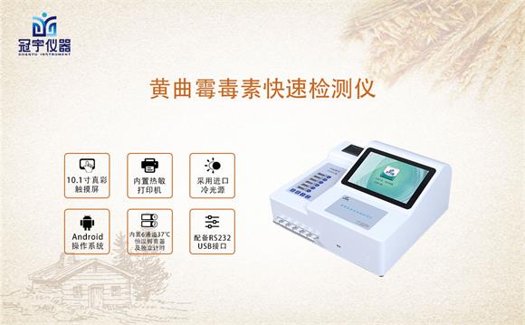 對黃曲霉毒素進行抽檢和檢控工作也是不可缺少的。冠宇儀器黃曲霉毒素快速測試儀能夠快速定量檢測玉米、小麥、大米、大麥、小米和燕麥等谷物、飼料、面粉、食用油、調(diào)味品、乳及乳制品等中黃曲霉毒素B1、黃曲霉毒素M1的含量,適用于糧庫收糧檢測、食品監(jiān)測中心、糧油飼料生產(chǎn)加工、食品加工貿(mào)易、畜禽養(yǎng)殖戶自查、工商質(zhì)監(jiān)部門用于市場快速篩查等。
