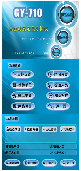 點擊圖-2可以進(jìn)行選擇【日期設(shè)置】【時間設(shè)置】【網(wǎng)絡(luò)設(shè)置】【檢驗單位】【檢驗人員】【樣品來源】