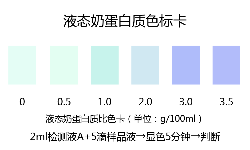 1.3:取2ml蛋白質(zhì)檢測(cè)試劑于比色管中,加入5滴樣品液,振搖混勻5分鐘后,觀察顏色變化并與標(biāo)準(zhǔn)比色卡對(duì)比。