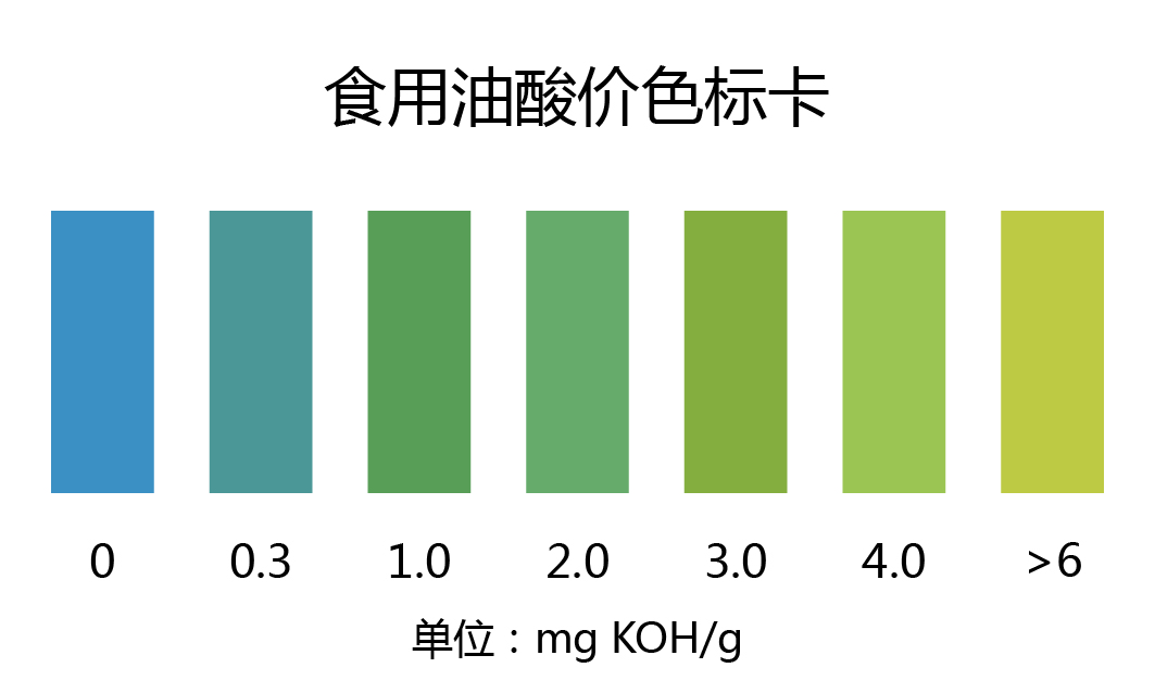1.2:如試紙顏色在兩色階之間,則取中間值。酸價(jià)測試紙的最佳反應(yīng)時(shí)間為5min,3~8min內(nèi)比色有效。