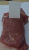 1.1:在被檢肉的肌肉(瘦肉)橫斷面上切一小口,將檢測紙片插入約1厘米(最深1.15厘米)深處;
