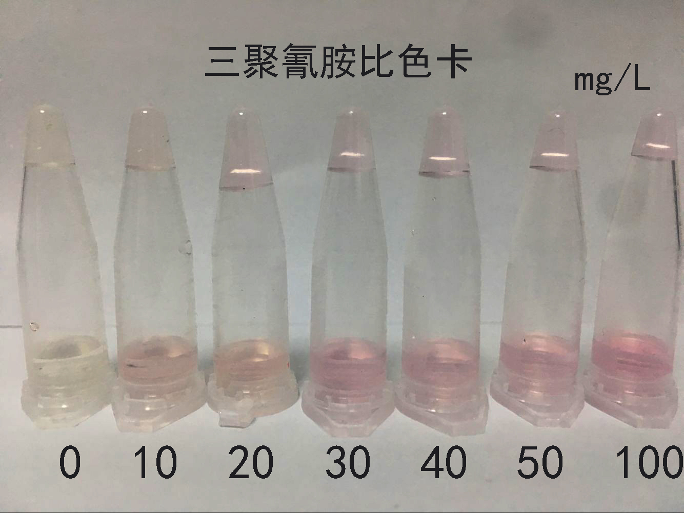 2.2:溶液呈粉紅色,樣品液含有三聚氰胺,濃度越高,顏色越深。(見色卡)
