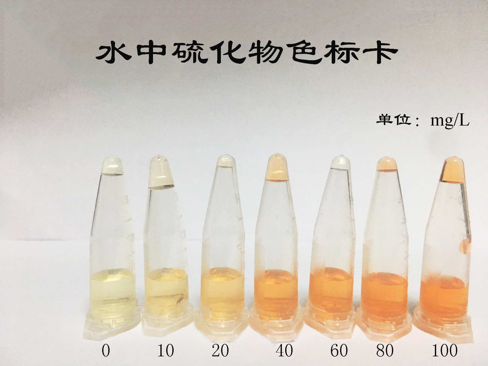 2.2:呈現(xiàn)深黃色和深橘色為硫化物(S2-)陽性結(jié)果,橙色深度與硫化物的濃度成正比,檢出限1 mg/kg,(1 ppm)。橙色越深表明味精硫化鈉含量越高。(見比色卡)